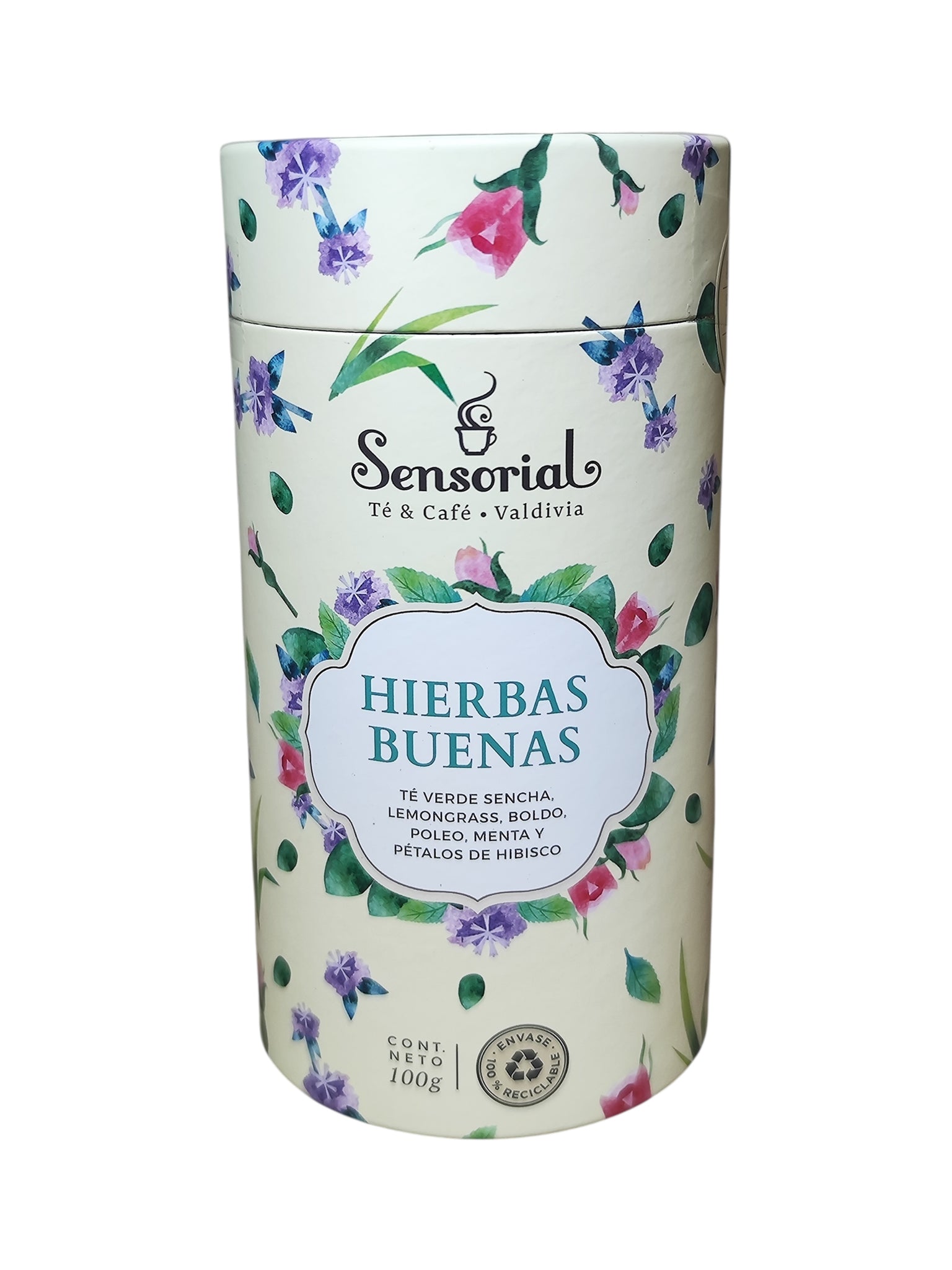 Té verde Sencha, lemongrass, boldo, poleo, menta e hibisco.