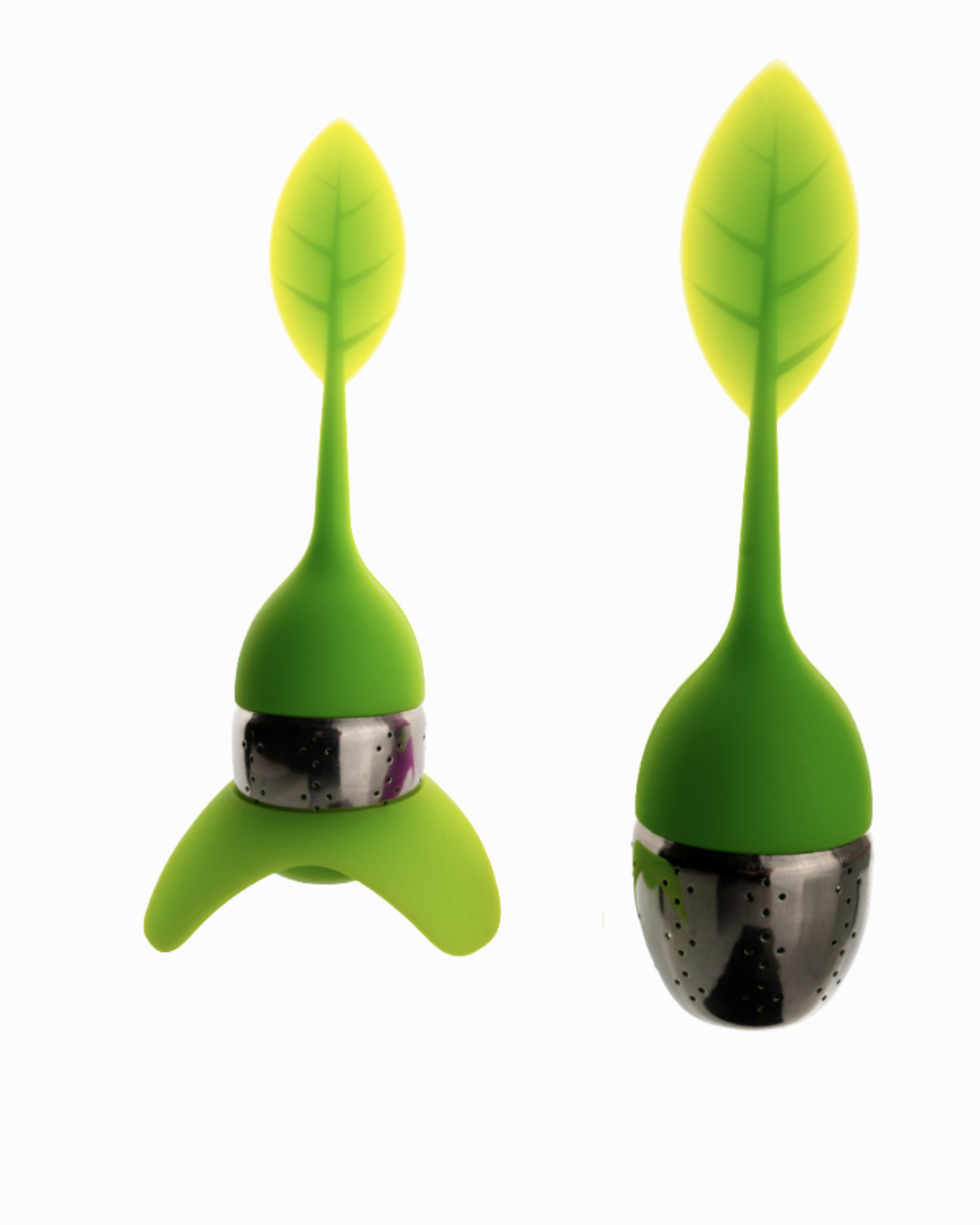 Infusor de silicona y acero inoxidable que incluye platillo.